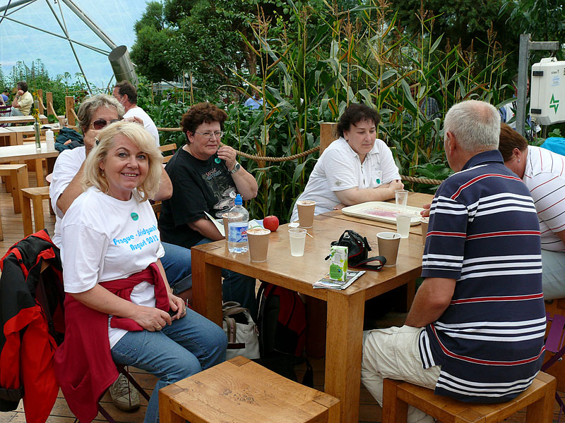Zdena Biggsova has been bringing Czechs to Britain for many years now and was instrumental in our original contacts with Prague 6 district. Retiring from her school in Prague to continue working in the nearby town of Kladno she has in the past continued her trip organising including jaunts to Ireland, Scotland and London in recent years. This year her merry band of chums flew in to Bristol on a lovely sunny August evening and were whisked away by us to the Swiss Chalet style youth hostel on the Polden ridge near the shoe town of Street and overlooking Glastonbury tor.
